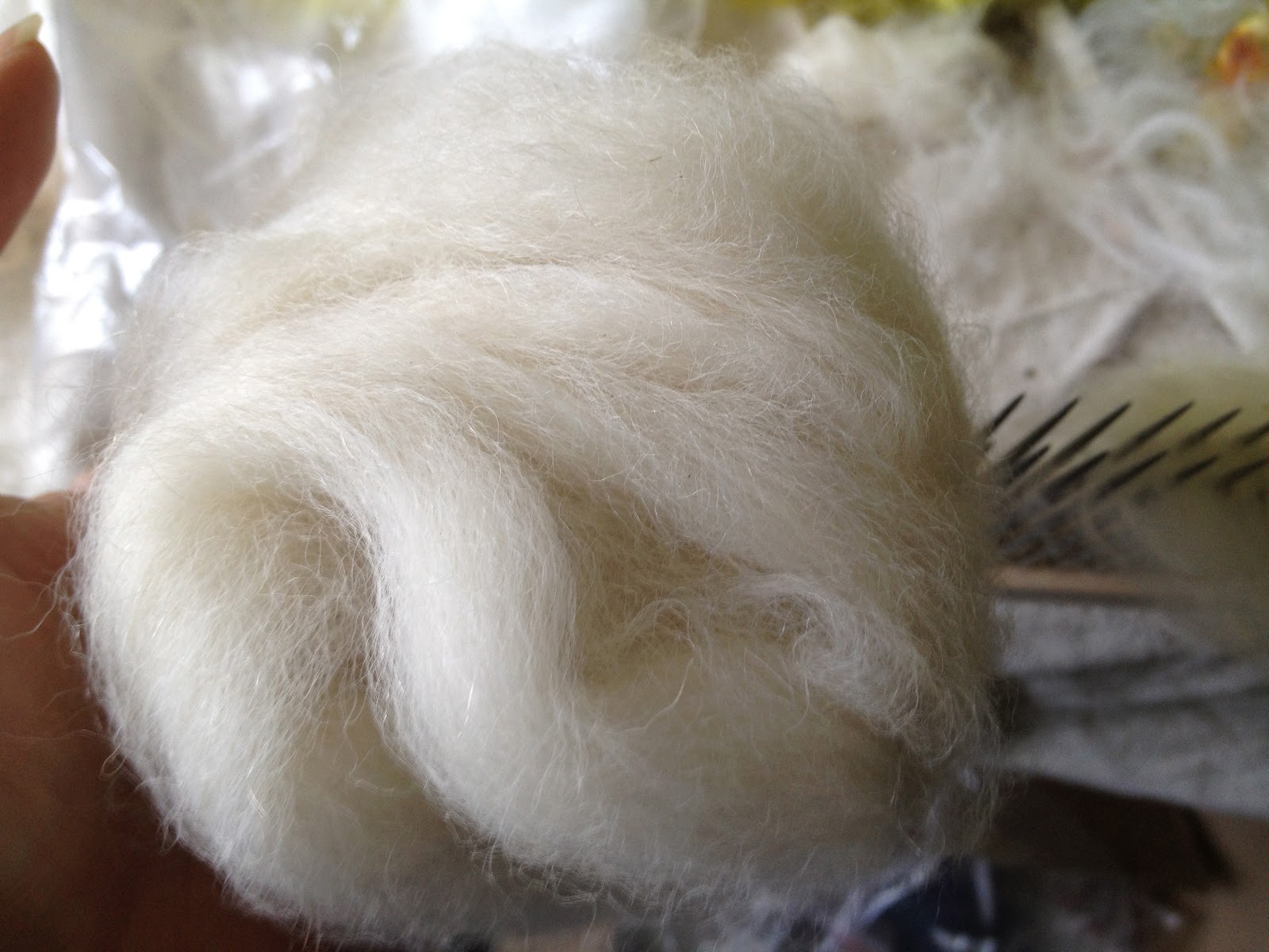 Here is the fiber all dry and fluffy. At this point you can pick it or go straight to combing or carding.