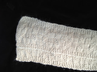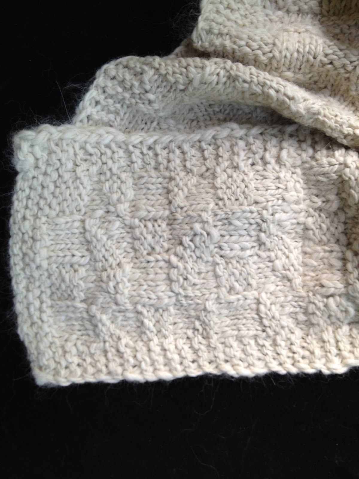Step 7 – Knitting the Scarf – you ideally should have picked out your pattern (or created one) prior to spinning the yarn. Sometimes I spin without a project in mind, but the best method is to spin WITH a project in mind. I wrote the patter FIRST, and determined what my WPI and yardage would need to be and then I sat down to spin. Here is the scarf before blocking. It is a Broken Basketweave™ pattern. You can see how the edged are not completely level. Some of this has to do with the hand spun yarn, but most can be taken care of with blocking.