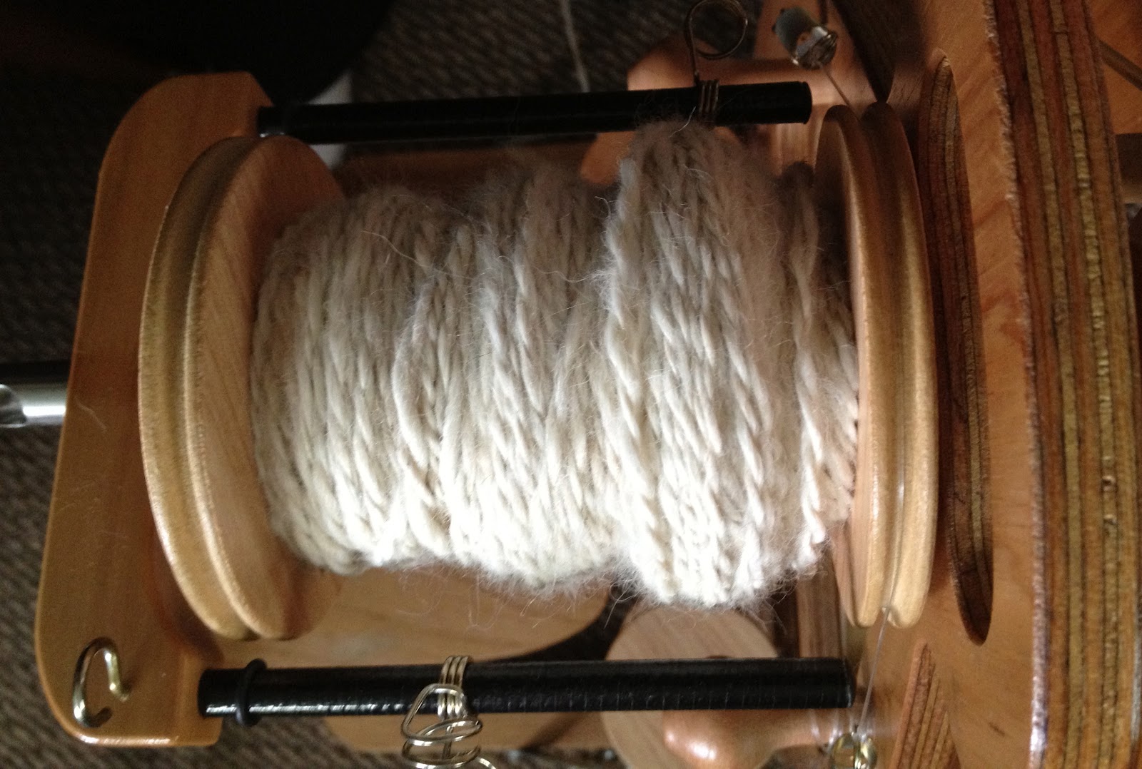 As you can see from the finished yarn (and there were several skeins), that there is a variation in the yarn – it does not look like commercial yarn or yarn from a mill. That is how I like to spin, I like it to look like hand spun yarn.