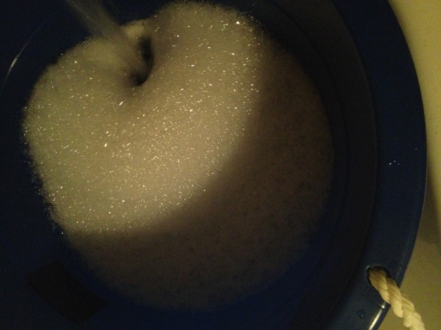 | Soapy water waiting for the fleece. |