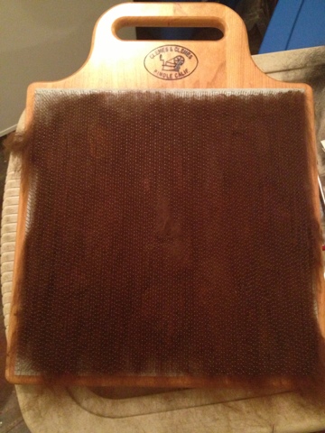 I did not (because I didn’t need to) pick Brandy’s fleece. She was already cleaned and carded and ready to go.