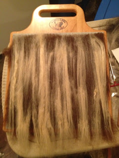 Because I am a Clemes & Clemes distributor and the new blending board is now a part of my fiber tool arsenal, I decided to prep Brandy’s fiber on the blending board. Brandy’s fiber was already carded on my drum carder. . . but it didn’t need to be (you can place uncarded fiber on the board too). I am in love with this blending board and I have been in rolag heaven. . . it is just so much fun!!!