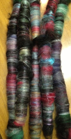 | Some rolags from the board (but NOT for this fiber, forgot to take a pic of Brandy’s prep) |