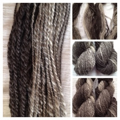 | Organic Brown NZ Corriedale blended with Tussah and Soffsilk™ Prepped from commercially prepared top – For Sale Here |