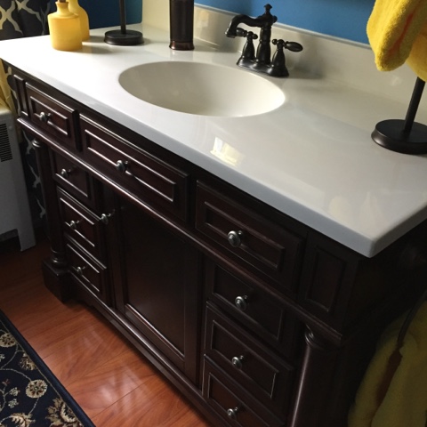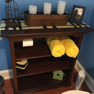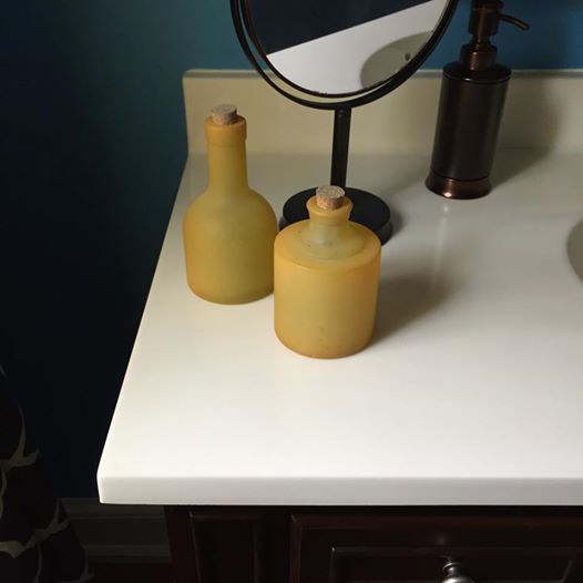 | Found at a yard sale, these bottles look perfect just sitting on the vanity. |