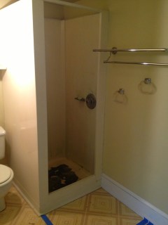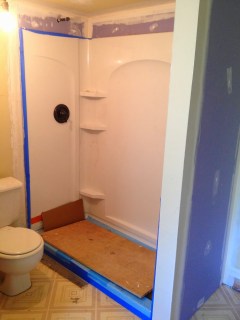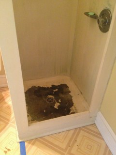 We decided to do a complete gut of the room with the exception of the radiator. We decided not to move any plumbing except for the shower head and regulator. The shower head was in the ceiling.