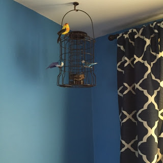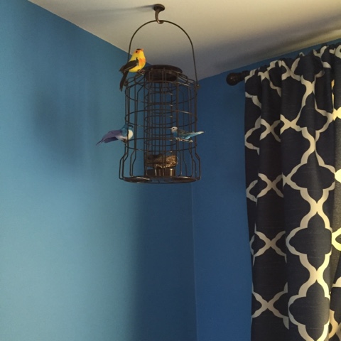 | Bird cage found at a “going out of business” craft store. I then purchased little birds and nests to make it look “real” |