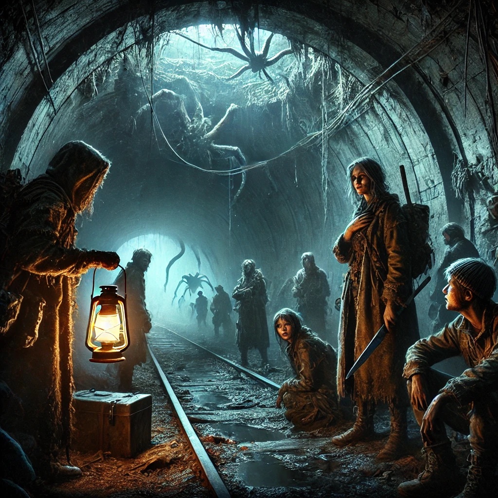 The wind howled through the cracked tunnels, carrying with it the faint stench of decay. Elara sat near the back of their hideout, her knees pulled to her chest. The remains of the canned beans still in her hand. The others had already eaten and drifted into uneasy sleep, huddled together for warmth in the damp underground. But Elara remained awake, her ears attuned to the distant hum above ground—the telltale sign that the Apex still prowled.